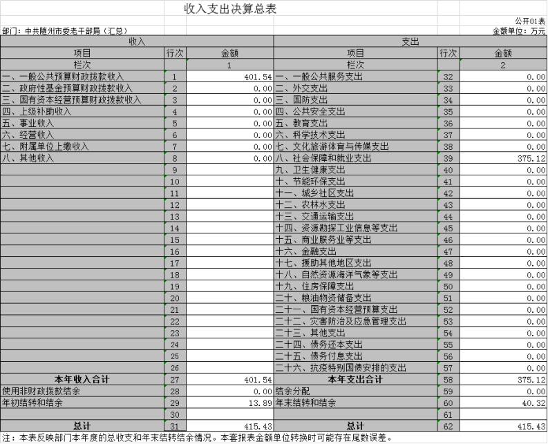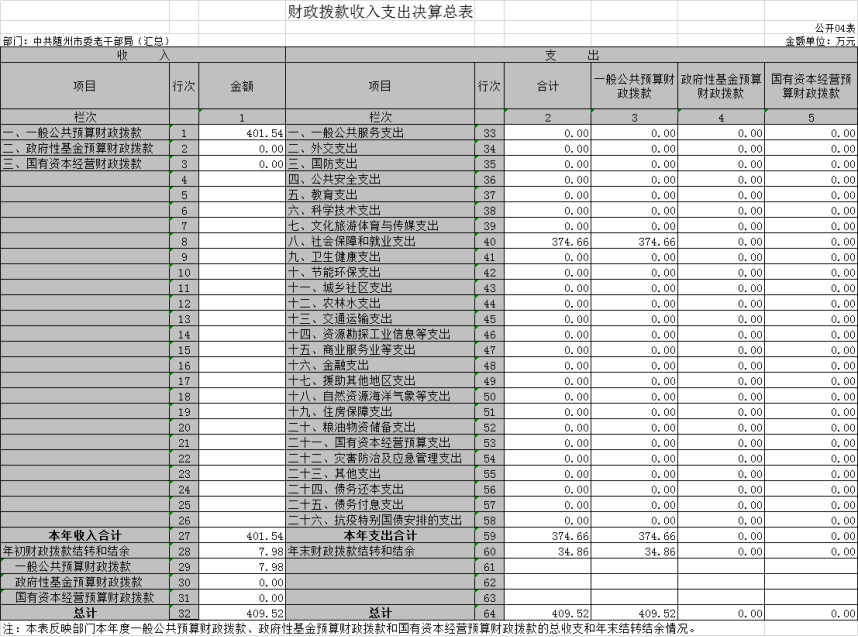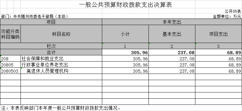 三、中共隨州市委老干部局2020年部門決算表