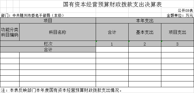 九、國有資本經營預算財政撥款收入支出決算表(公開表09表)