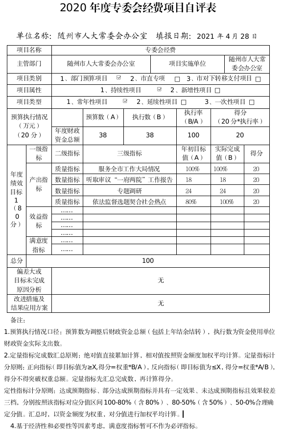 3、專委會經(jīng)費38萬,實際支出38萬。用于保障市人大8個專(工)委工作經(jīng)費。該項目執(zhí)行率達到100%。