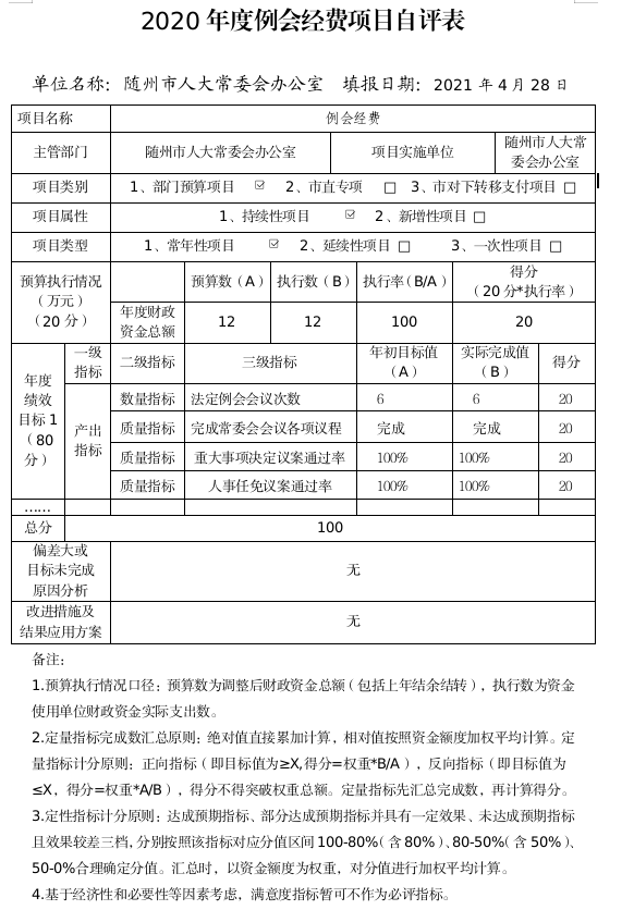 ???????2、例會經(jīng)費12萬元,實際支出12萬元。用于保障每年至少要召開6次常委會相關(guān)保障費用。該項目執(zhí)行率達到100%。