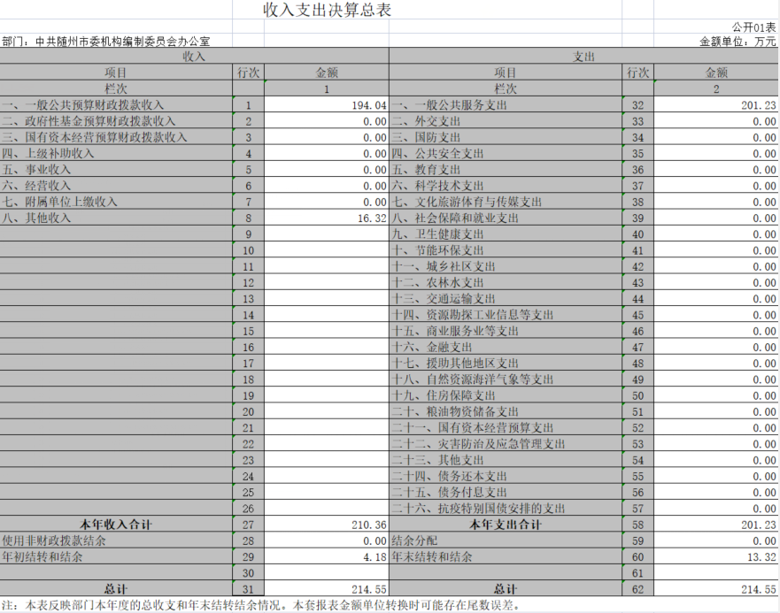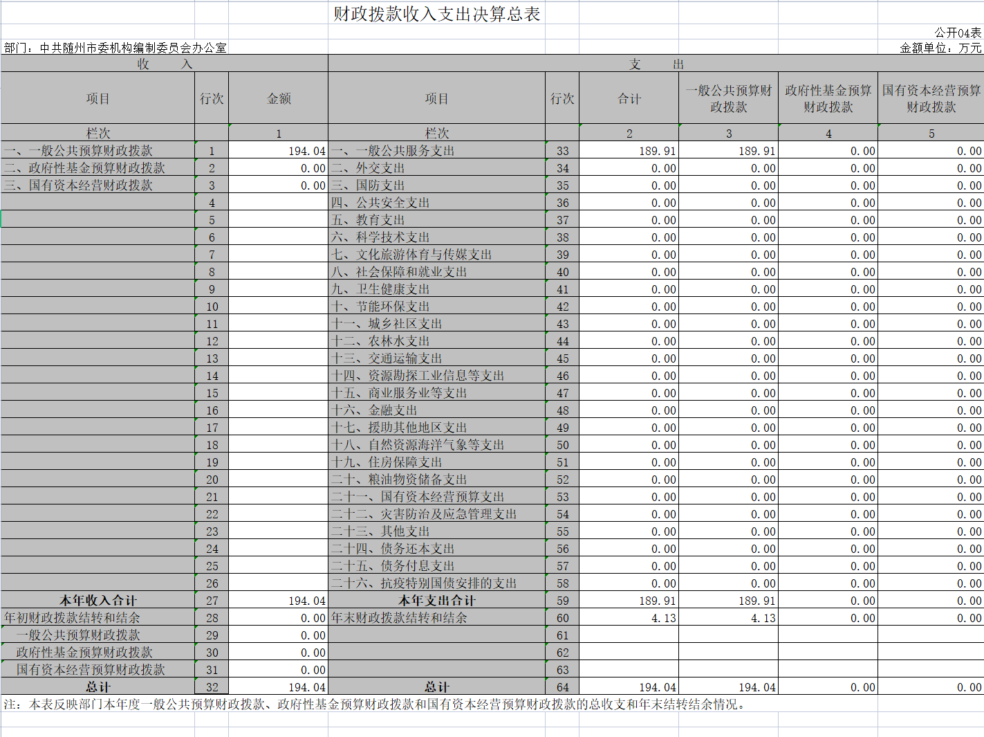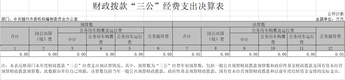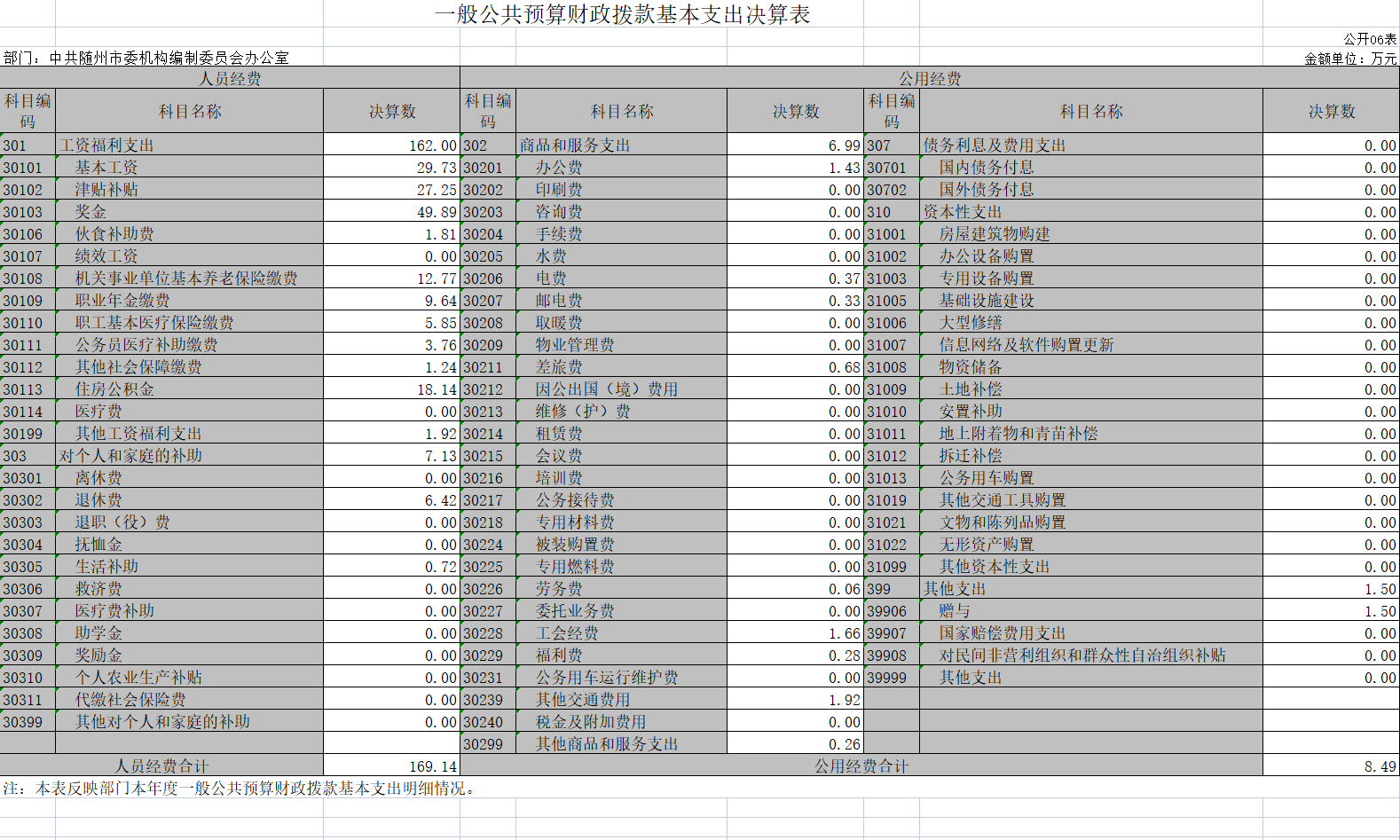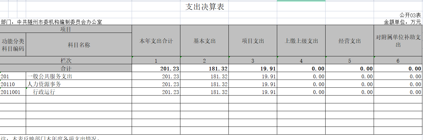 附3、2020年度隨州市機構編制委員會辦公室部門決算公開表