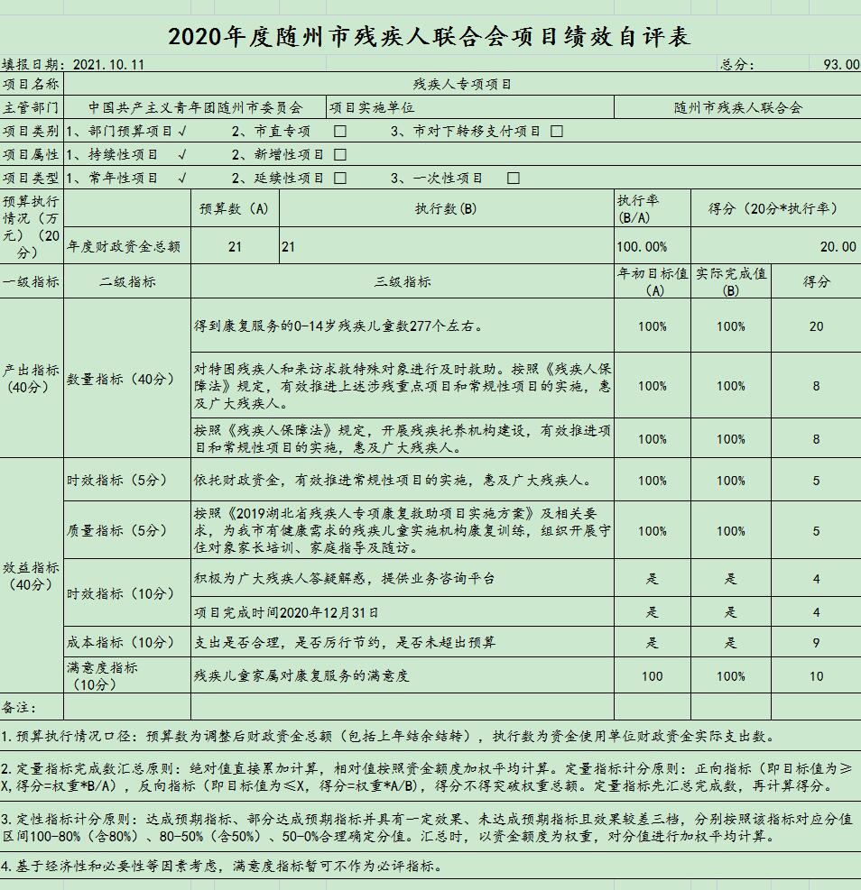 附:2020年部門項目支出績效自評表