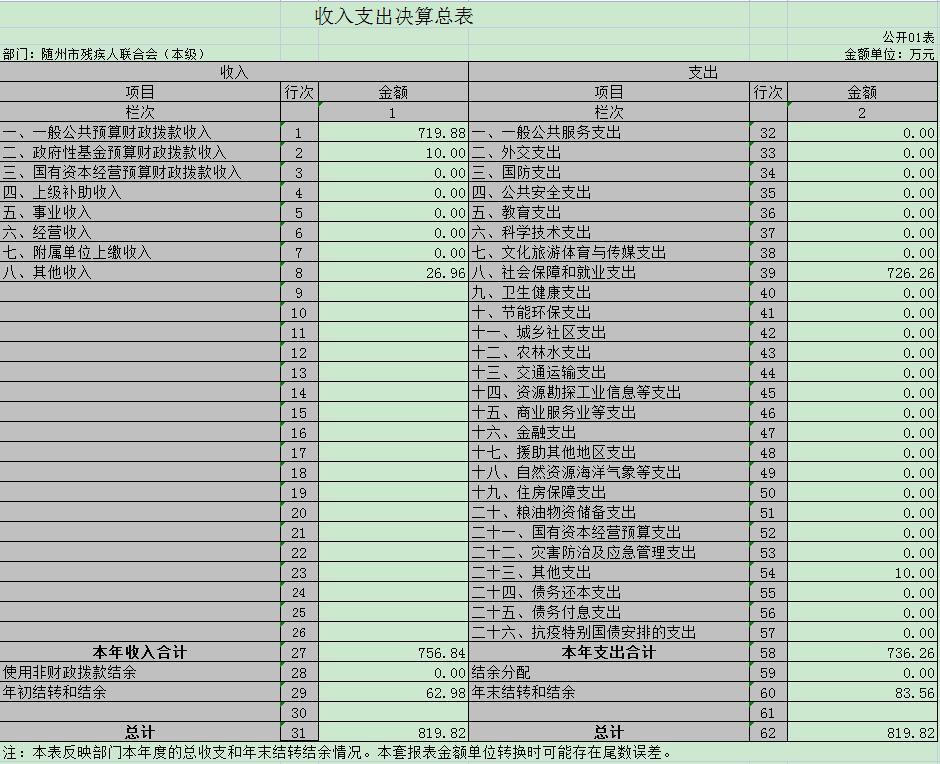 一、收入支出決算總表(公開表01)