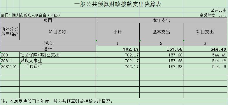 五、一般公共預算財政撥款支出決算表(公開表05)