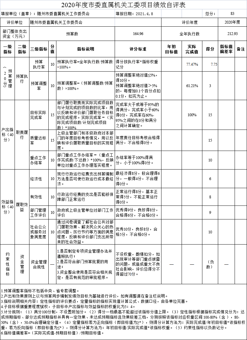 七、關于2020年度預算績效情況的說明