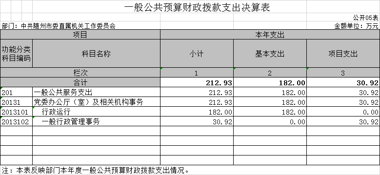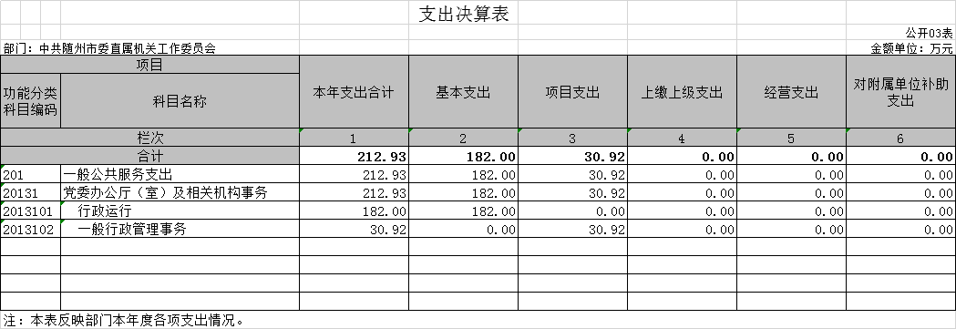 第三部分??中共隨州市委直屬機關工作委員會2020年部門決算表