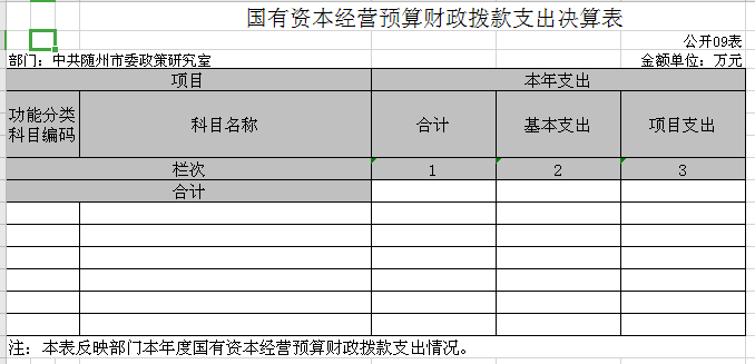九、國有資本經(jīng)營預(yù)算財政撥款收入支出決算表(公開表09表)