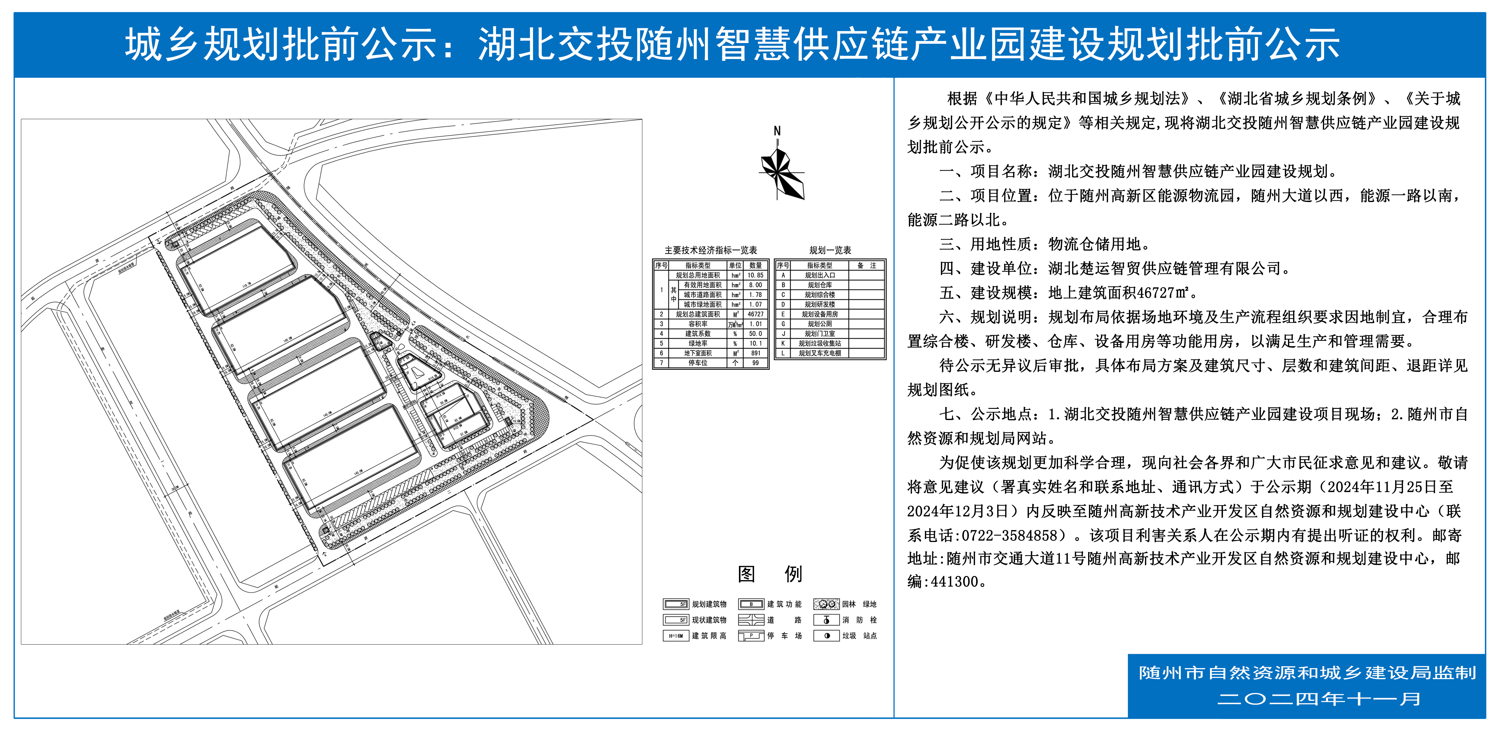 城鄉規劃批前公示:湖北交投隨州智慧供應鏈產業園建設規劃批前公示