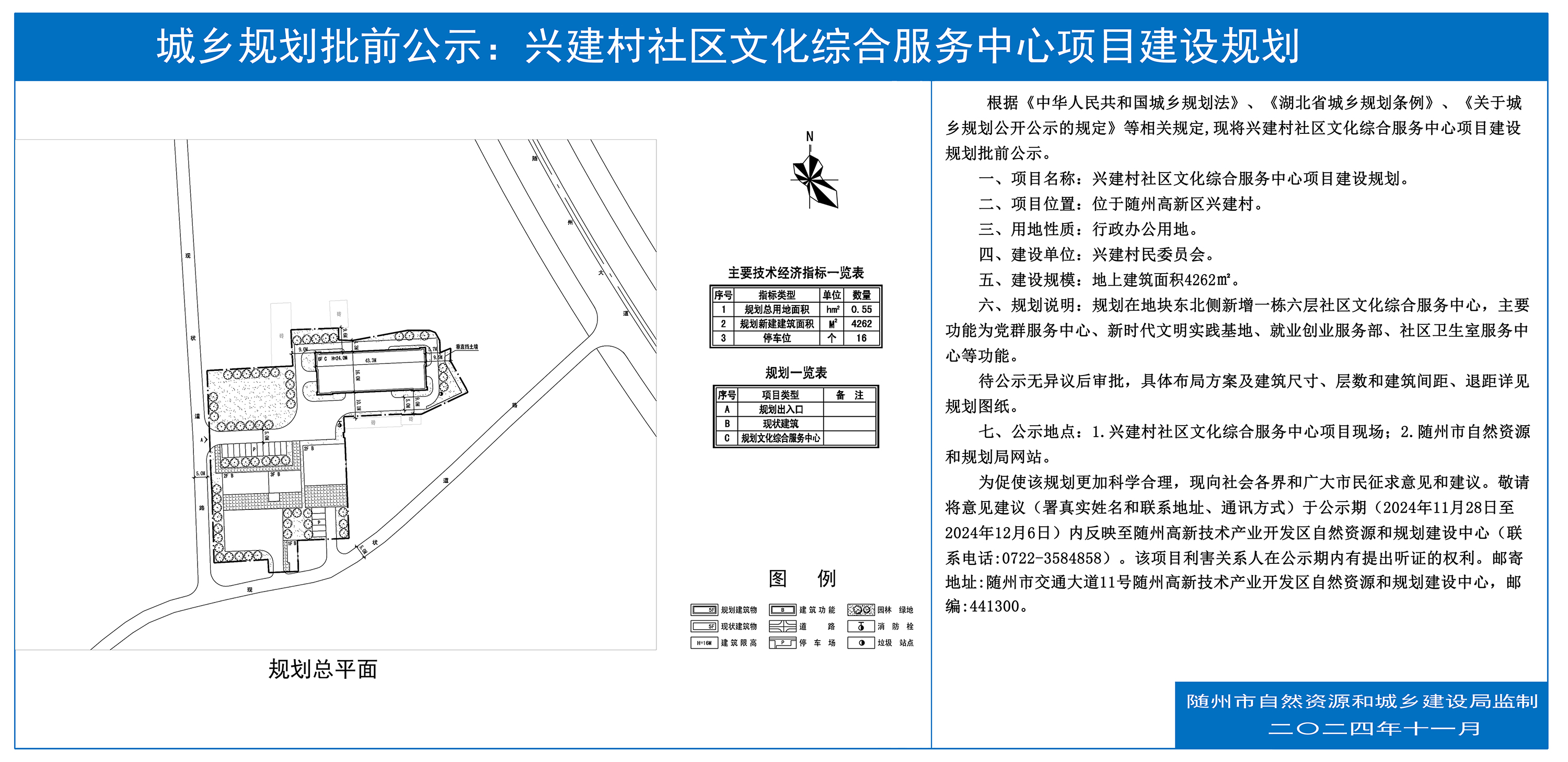 城鄉規劃批前公示:興建村社區文化綜合服務中心項目建設規劃