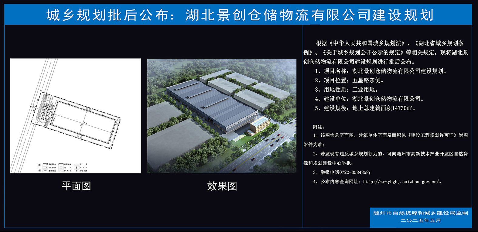 城鄉規劃批后公布:湖北景創倉儲物流有限公司建設規劃