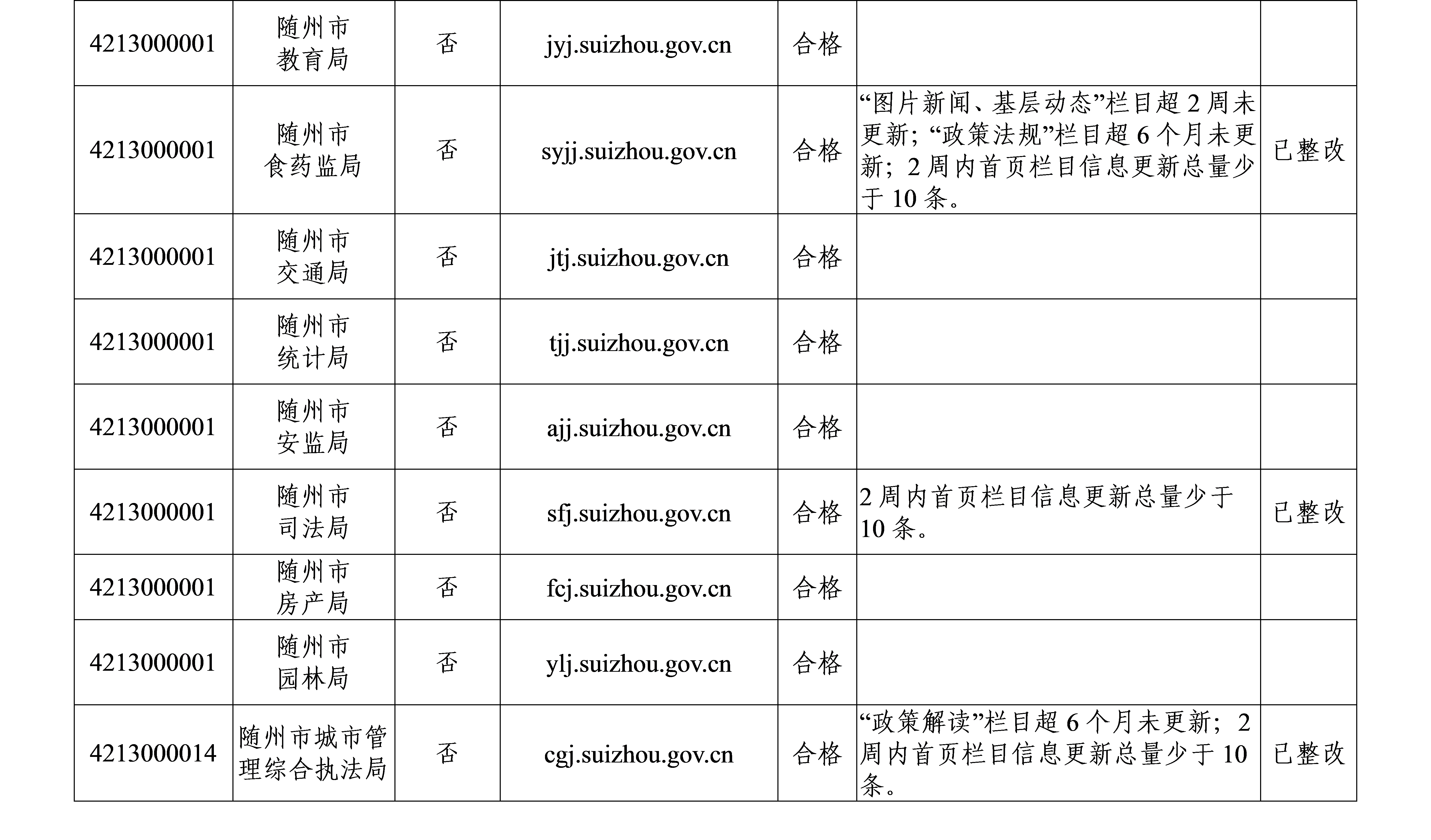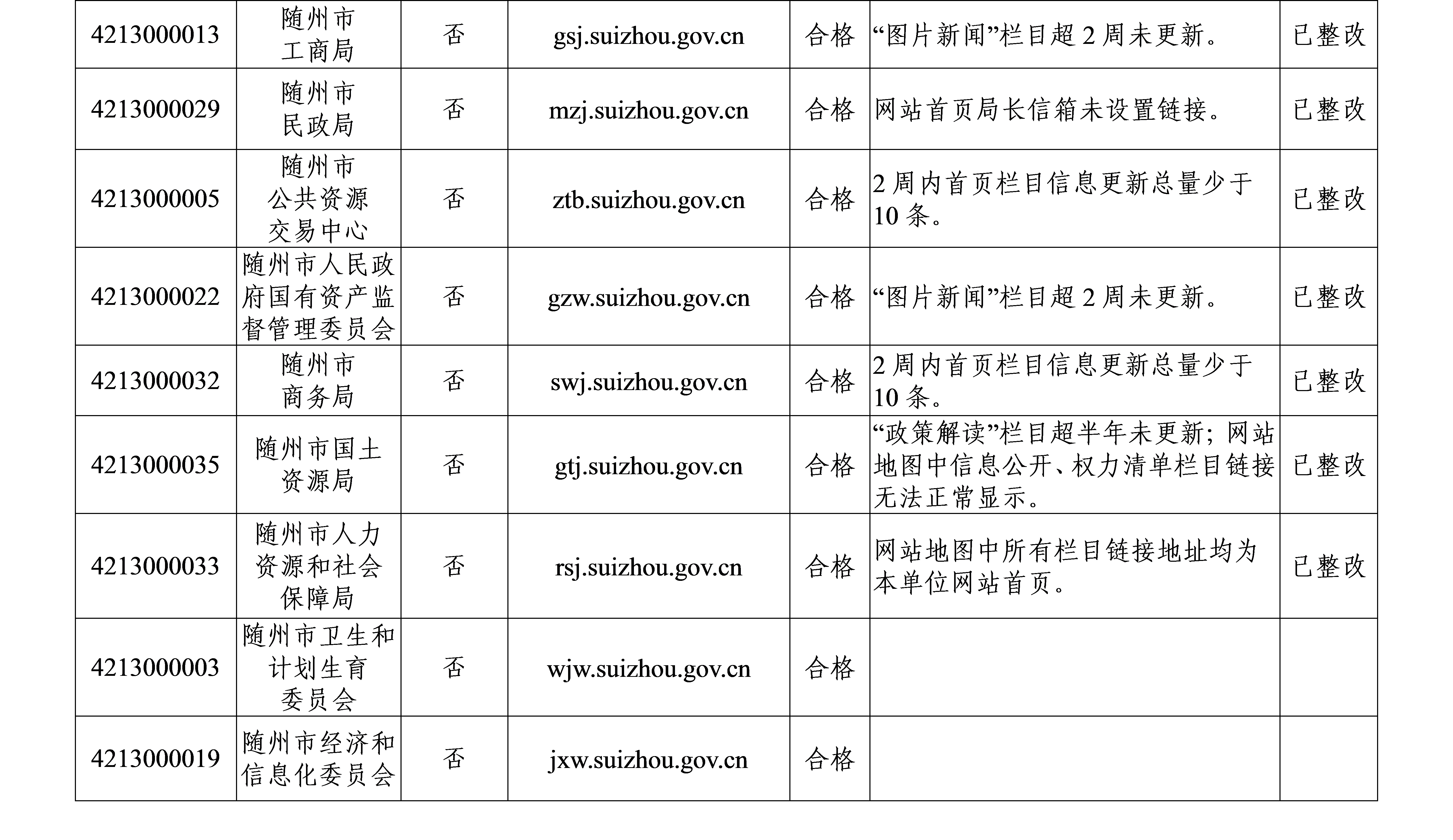 附件:隨州市2019年第一季度政府網站檢查情況表