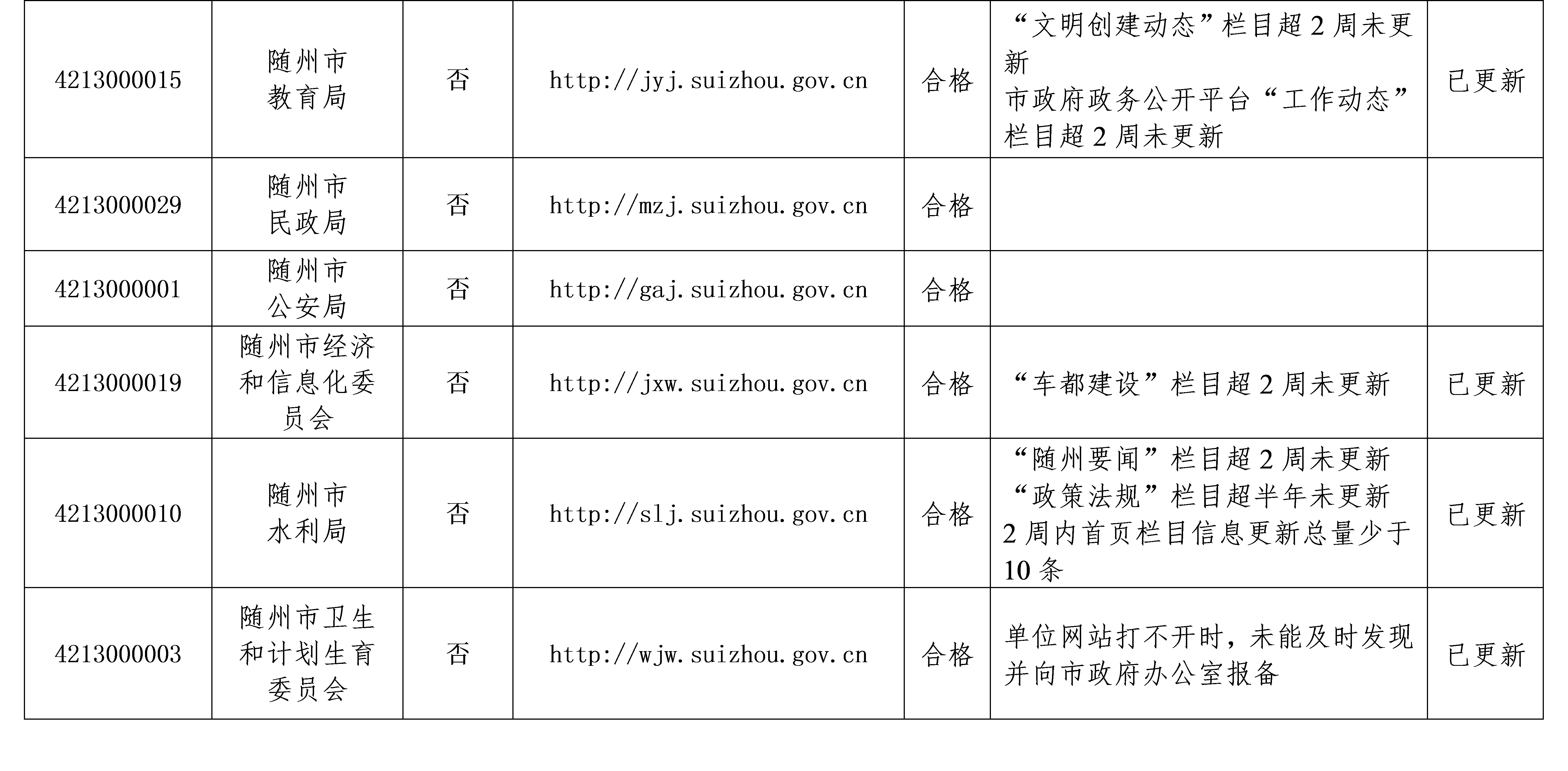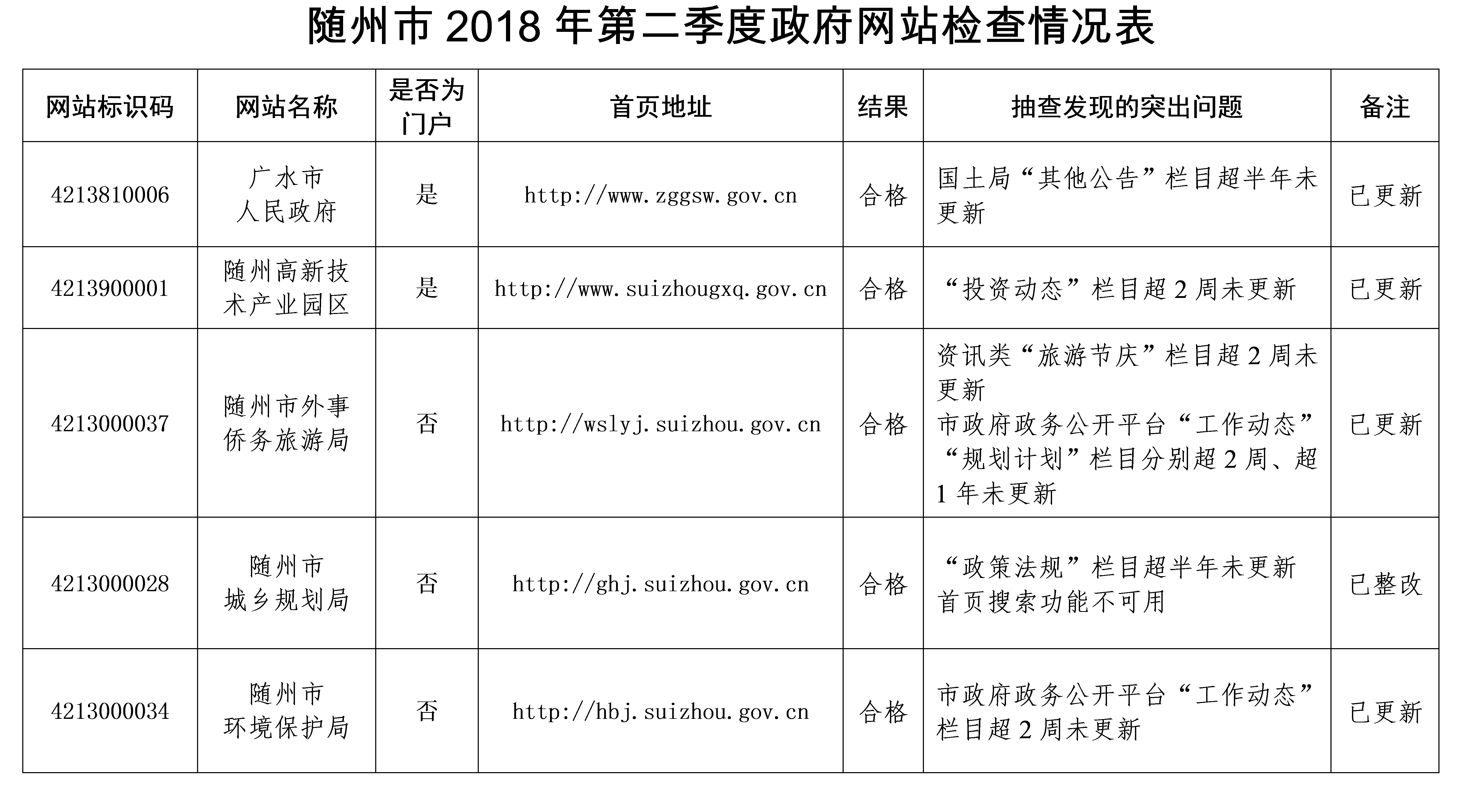 附件:隨州市2018年第二季度政府網站檢查情況表