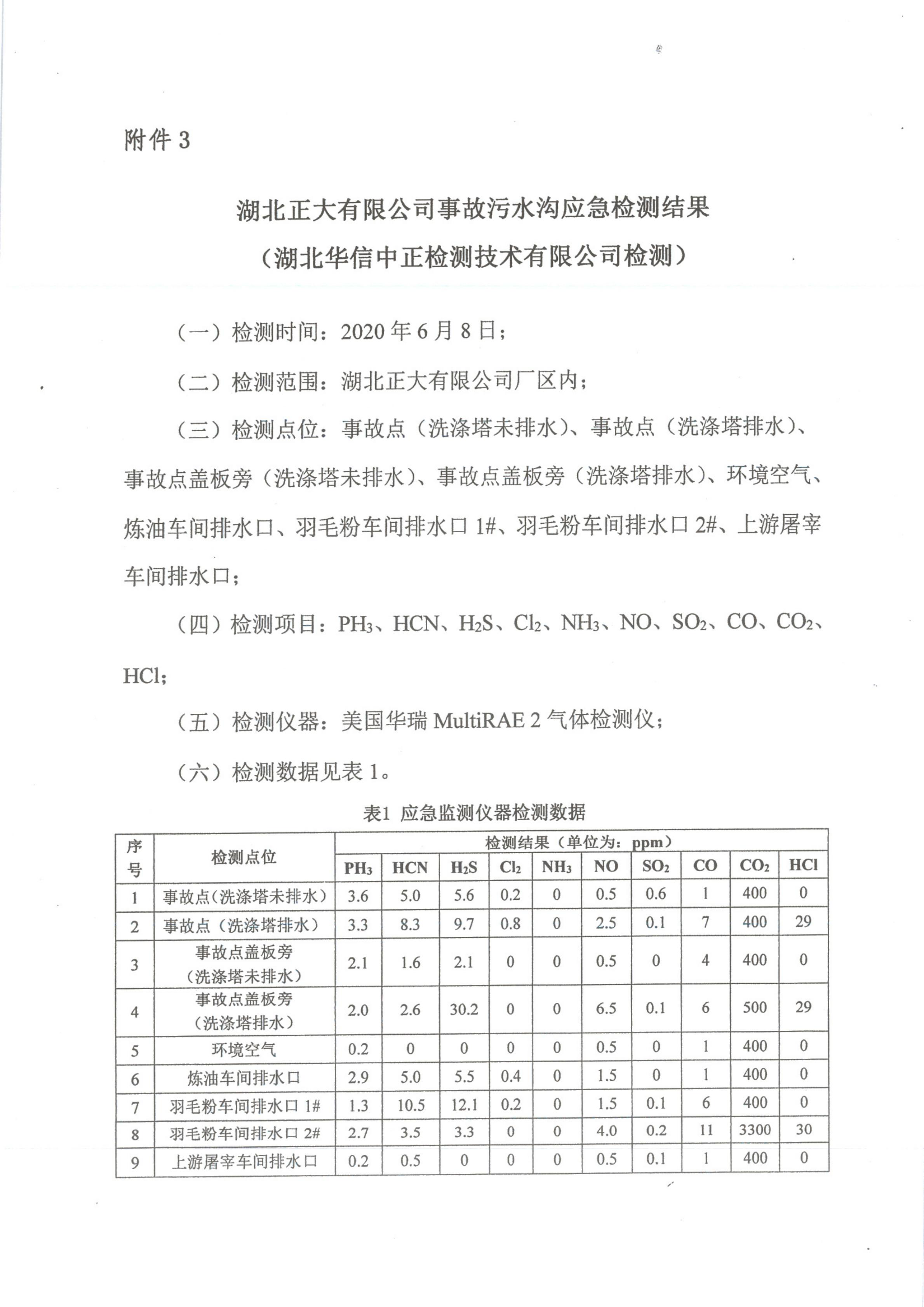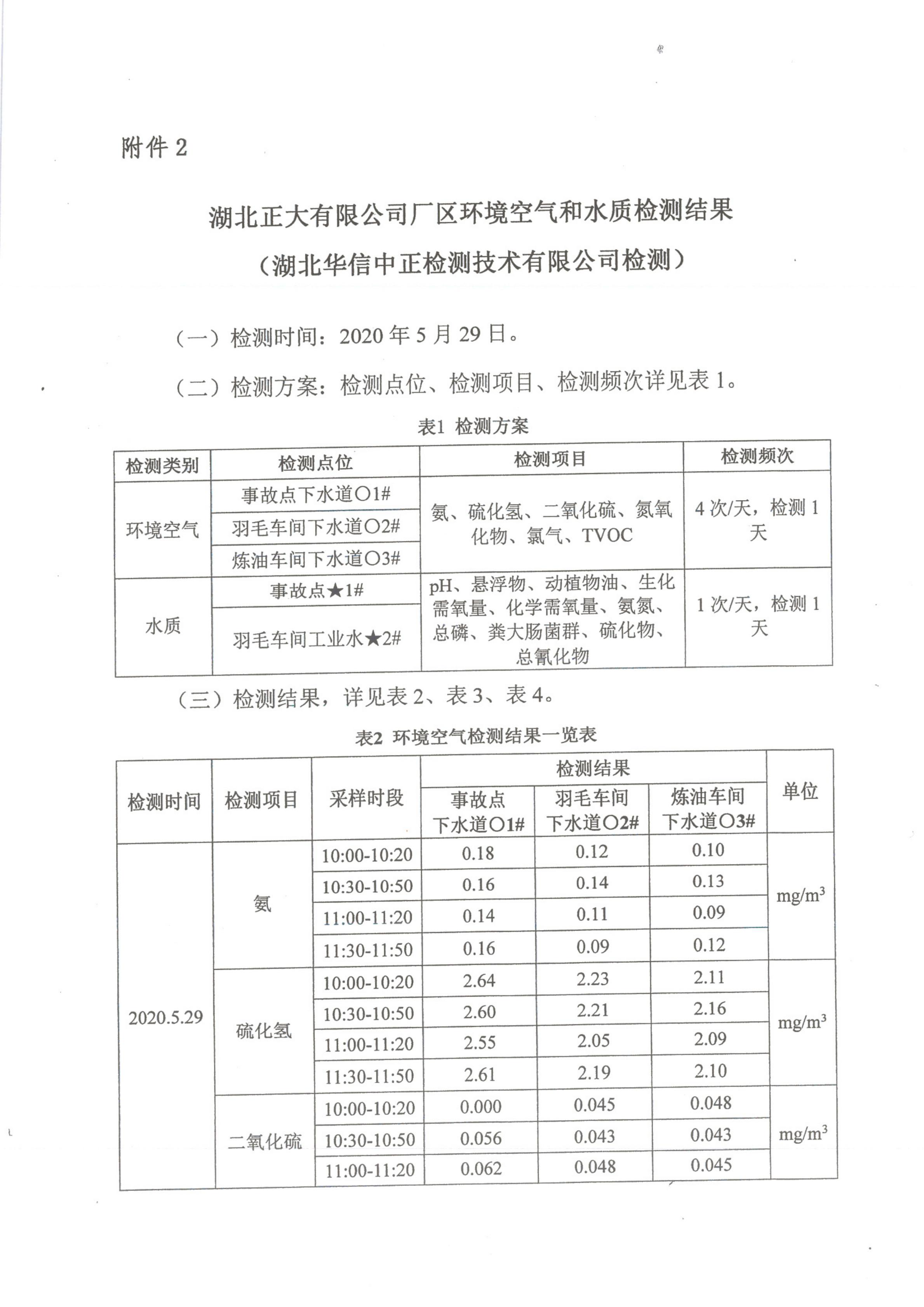 附件:1、湖北正大有限公司廠區排水溝空氣檢測結果
