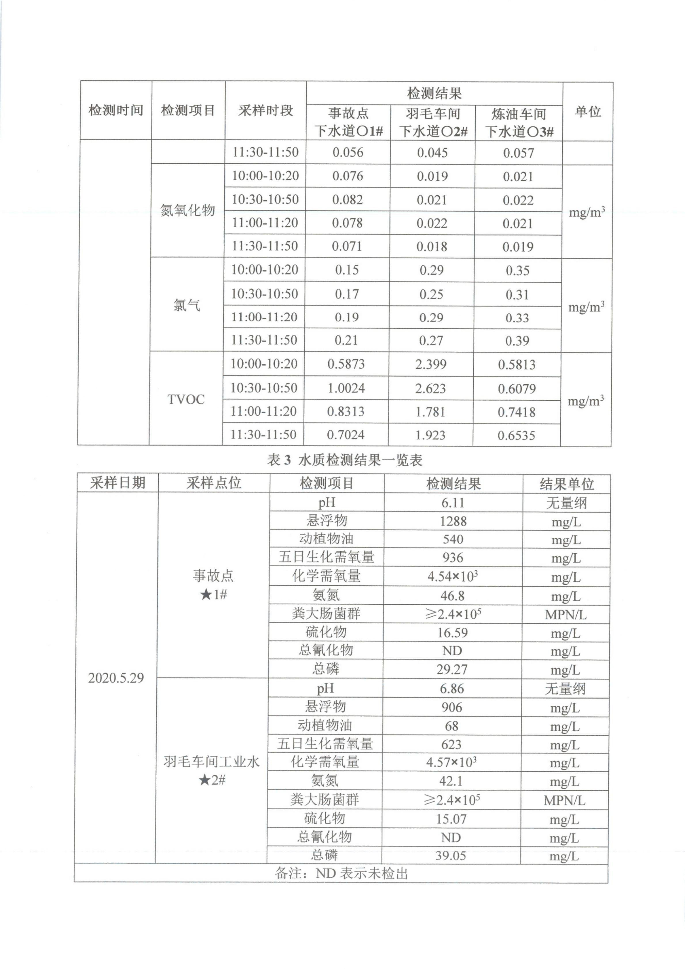 事故調查組委托了湖北紀安安全技術有限公司和湖北華信中正檢測技術有限公司兩家檢測機構對事發點的污水和氣體進行了取樣檢測,檢測發現事發污水溝內含有多種有毒有害氣體,具體數值見附件1、附件2、附件3。