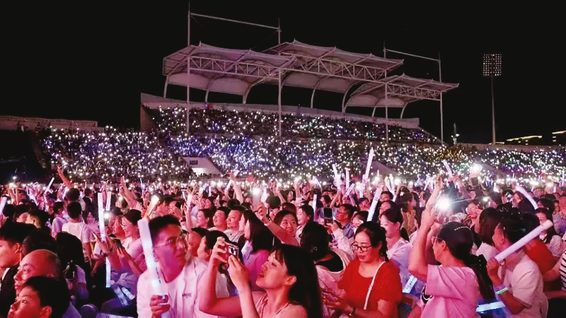 市民王欣然是演唱會的“忠實粉”,“真的很解壓,我沒想到演唱會開到了家門口。”她說,走進場館時,看到盛裝打扮來看演唱會的人群,以及大家臉上洋溢著的笑容,就覺得“當下真好”,瞬間忘記所有煩惱。而在現場,也會有某句歌詞讓自己胸口如同被擊中,“共鳴感格外強烈”。