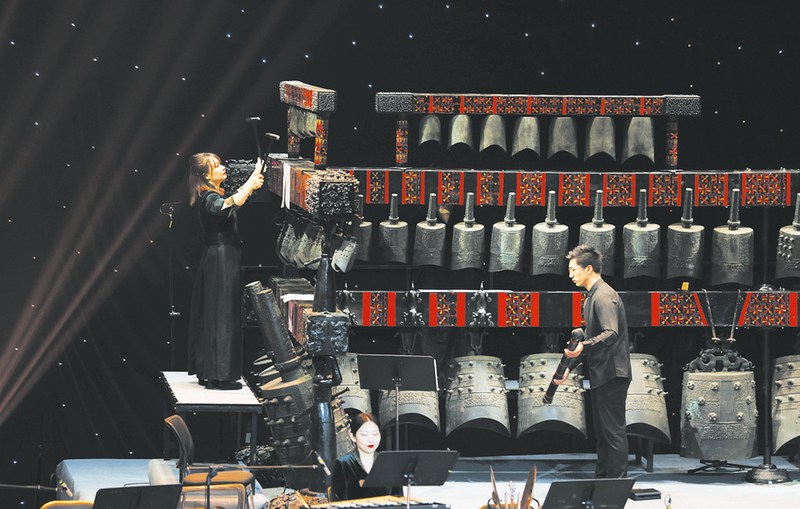 編鐘與民族管弦樂的融合是本場音樂會的一大亮點。《玄鳥》將編鐘那古樸神秘的音色與民族管弦樂交織,營造出神秘悠遠的意境,仿佛帶領聽眾穿越時空,探尋古老的文化意象。《荊楚小調》巧妙融合荊楚地區音樂風格,編鐘與管弦樂相互配合,生動展現荊楚大地的獨特風情。當編鐘與管弦樂共同奏響《我的祖國》,歷史的厚重感與家國的莊嚴感撲面而來,每一個音符都凝聚著對祖國山河的熱愛。