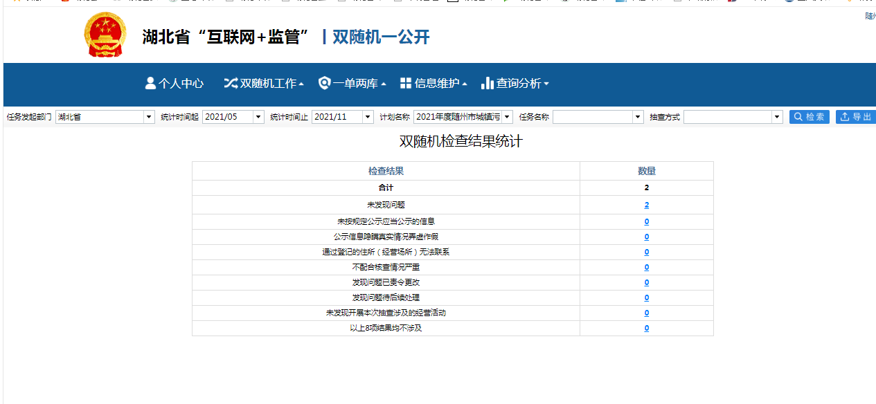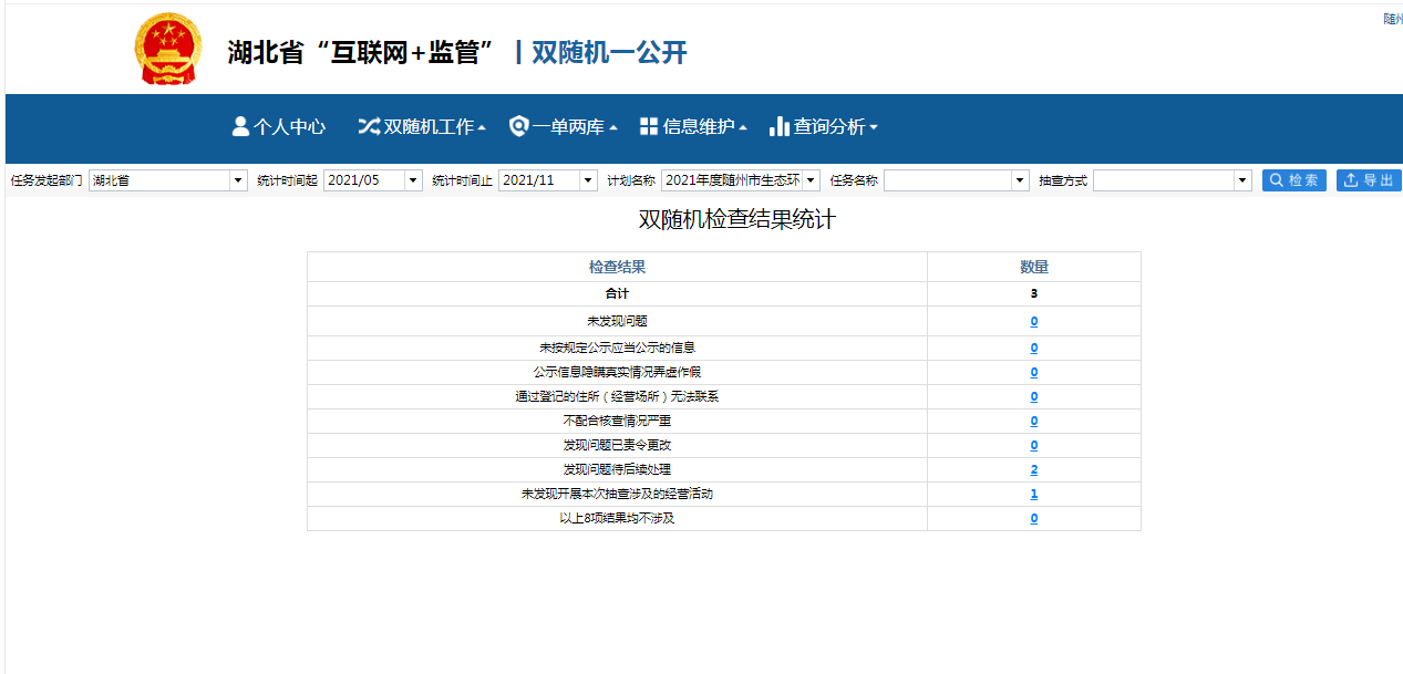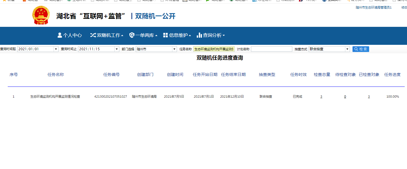 2021年隨州市生態(tài)環(huán)境局“雙隨機(jī)、一公開(kāi)”部門(mén)聯(lián)合抽查任務(wù)完成截圖