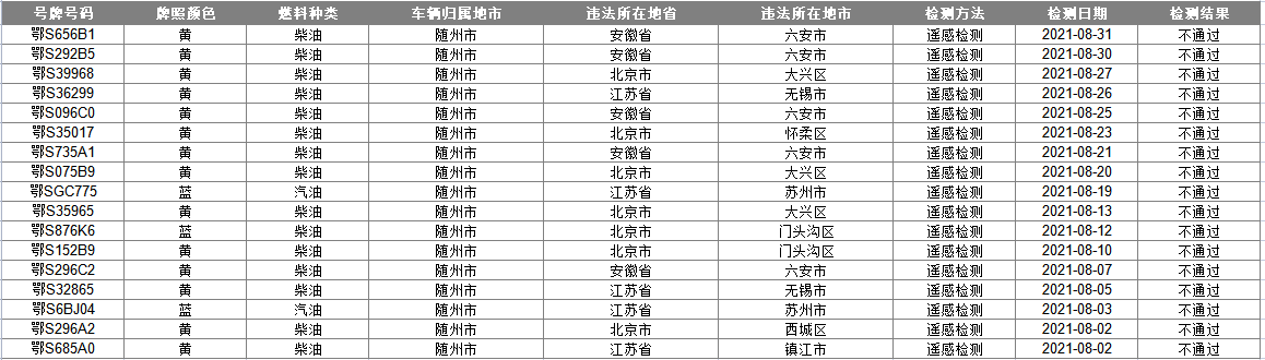附件:2021年8月隨州籍機(jī)動車異地尾氣排放不合格明細(xì)
