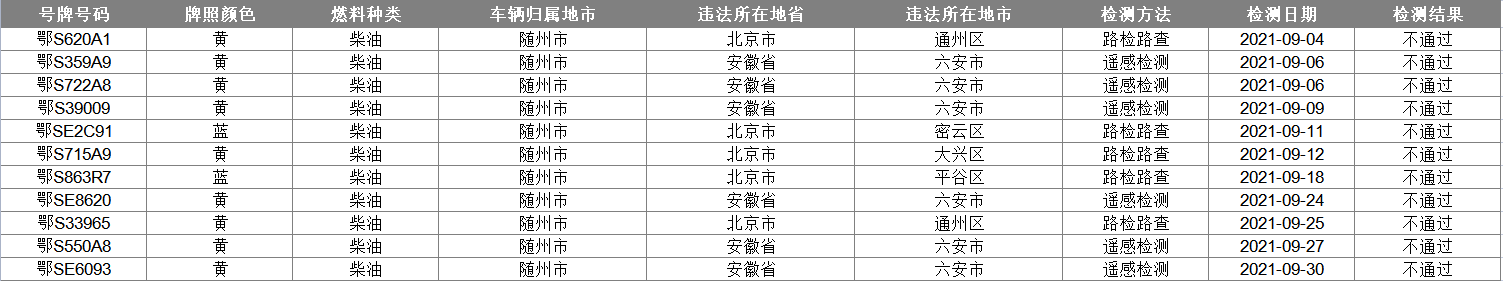 附件:2021年9月隨州籍機動車異地尾氣排放不合格明細