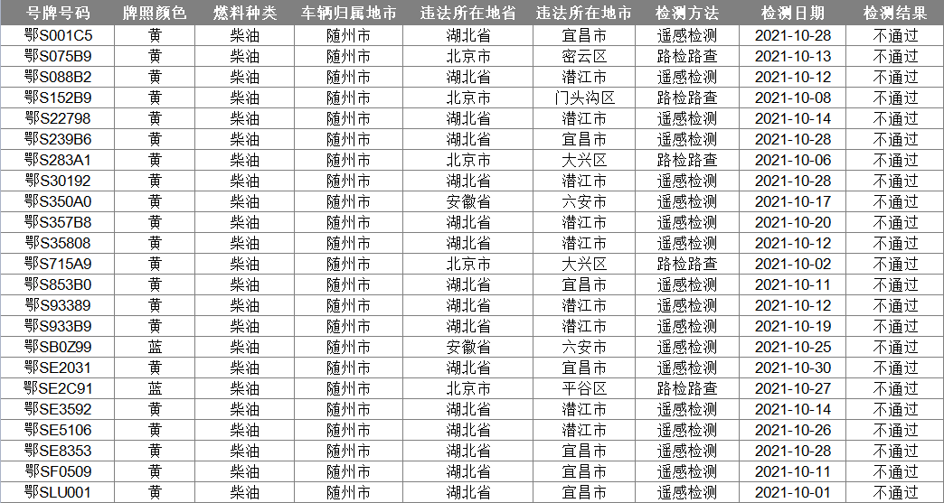 附件:2021年10月隨州籍機(jī)動車異地尾氣排放不合格明細(xì)