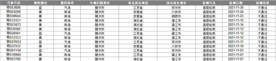 附件:2021年11月隨州籍機動車異地尾氣排放不合格明細