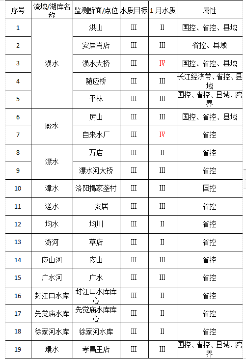 ?2022年1月,隨州市地表水環境質量監測情況統計見下表: