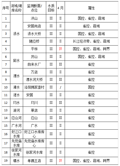 2022年4月,隨州市地表水環境質量監測情況統計見下表: