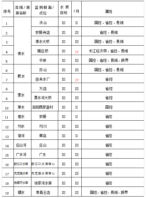 ?2022年7月,隨州市地表水環(huán)境質(zhì)量監(jiān)測情況統(tǒng)計見下表: