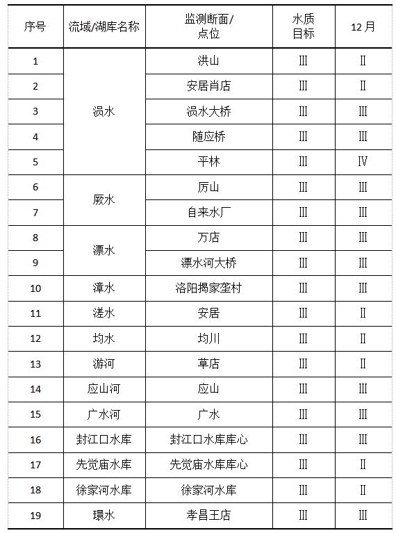 2022年12月,隨州市地表水環(huán)境質(zhì)量監(jiān)測情況統(tǒng)計(jì)見下表: