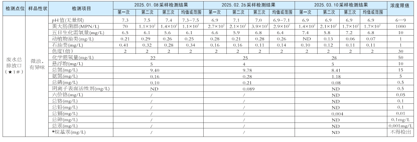 注:“※”代表本公司分包項目,*烷基汞分包給河南景順檢測科技有限公司(資質編號:241612050244)檢測。“ND”表示未檢出,“/”表示不涉及。