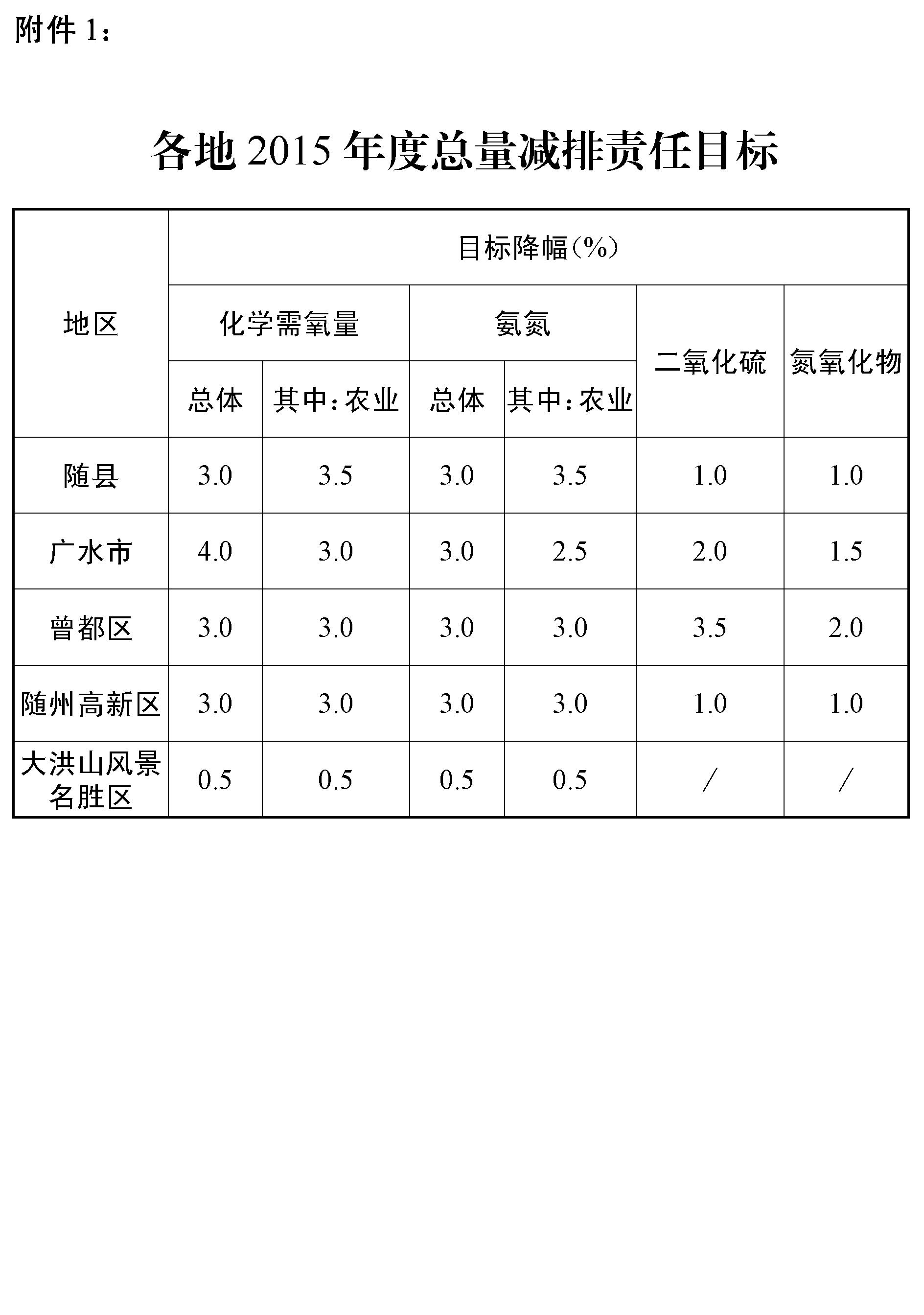 ??? 附件:1.各地2015年度總量減排責任目標