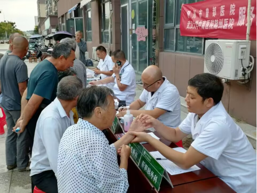 活動(dòng)現(xiàn)場(chǎng),來(lái)自曾都醫(yī)院的專家團(tuán)隊(duì)成了村民們眼中的“明星”。神經(jīng)內(nèi)科李洪斌主任、內(nèi)分泌科鄒少武主任、心血管內(nèi)科謝柱副主任、康復(fù)醫(yī)學(xué)科彭淞主任、普外胸外科胡競(jìng)崢副主任,這些平日里一號(hào)難求的專家,此刻正耐心地坐在桌前,與每一位前來(lái)咨詢的村民親切交流。他們?cè)敿?xì)詢問(wèn)村民的既往病史、日常癥狀,認(rèn)真細(xì)致地進(jìn)行聽診、量血壓、測(cè)血糖及心電圖等基礎(chǔ)檢查項(xiàng)目。每一個(gè)動(dòng)作都飽含著專業(yè)與專注,每一句詢問(wèn)都充滿了關(guān)切與溫情。一位大爺激動(dòng)地說(shuō):“我這老毛病一直想去大醫(yī)院看看,可又怕折騰,沒(méi)想到今天專家直接到家門口來(lái)了,真是太方便了!”