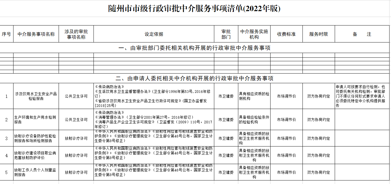 隨州市市級行政審批中介服務(wù)事項清單(市衛(wèi)健委2022年版)