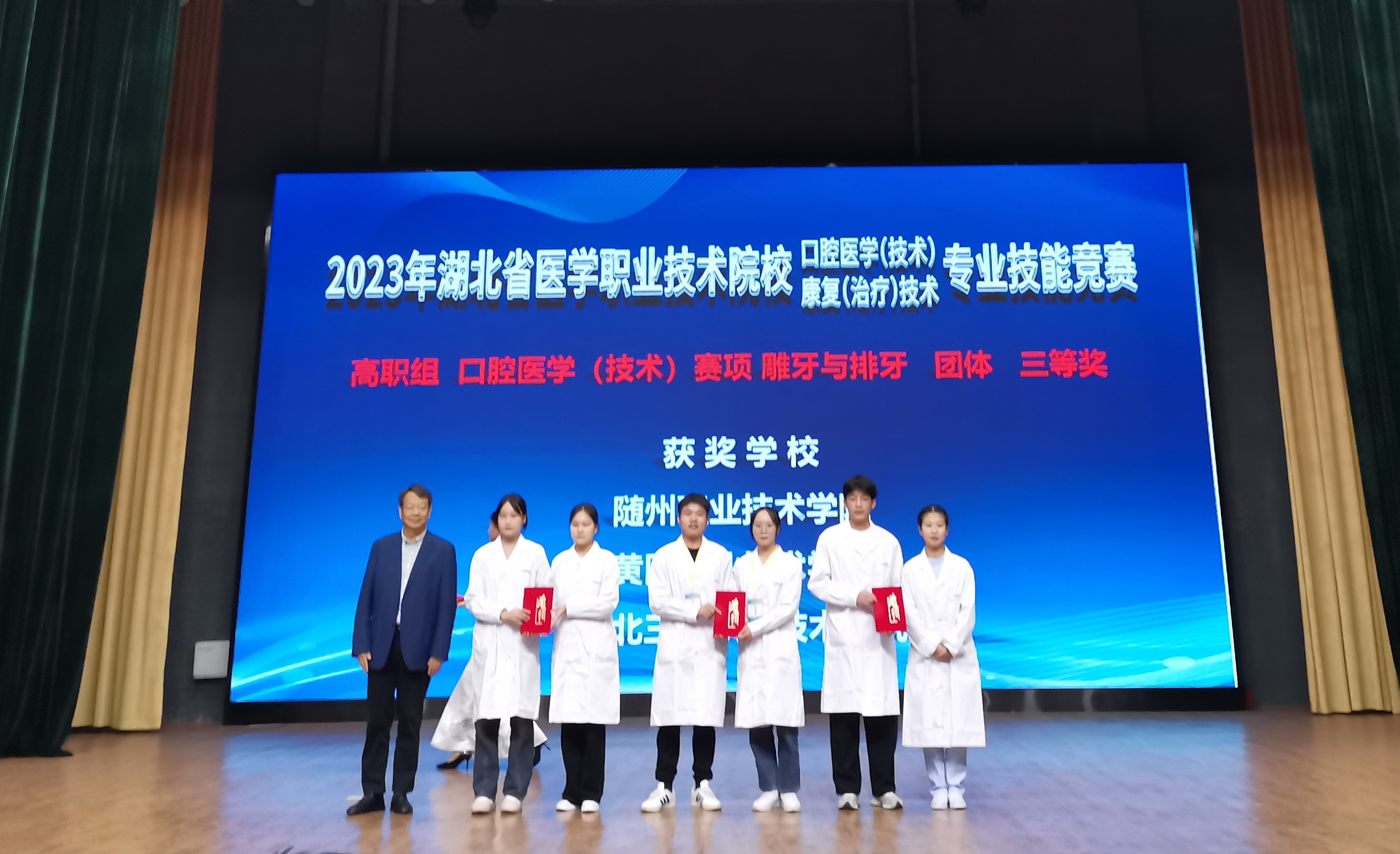 10月27-28日,由湖北省衛生健康委員會主辦,湖北省醫學職業技術教育研究室和湖北職業技術學院承辦的“湖北省醫學職業技術院校口腔醫學(技術)、康復(治療)技術專業技能大賽”正式開賽。隨州職院護理學院在康復治療技術賽項榮獲團體一等獎,王義嫻、解文嬌、周洪偉三名同學分別獲得個人單項二等獎;在口腔醫學技術賽項榮獲團體三等獎,祝非凡同學取得全口排牙二等獎、牙體雕刻三等獎的好成績。
