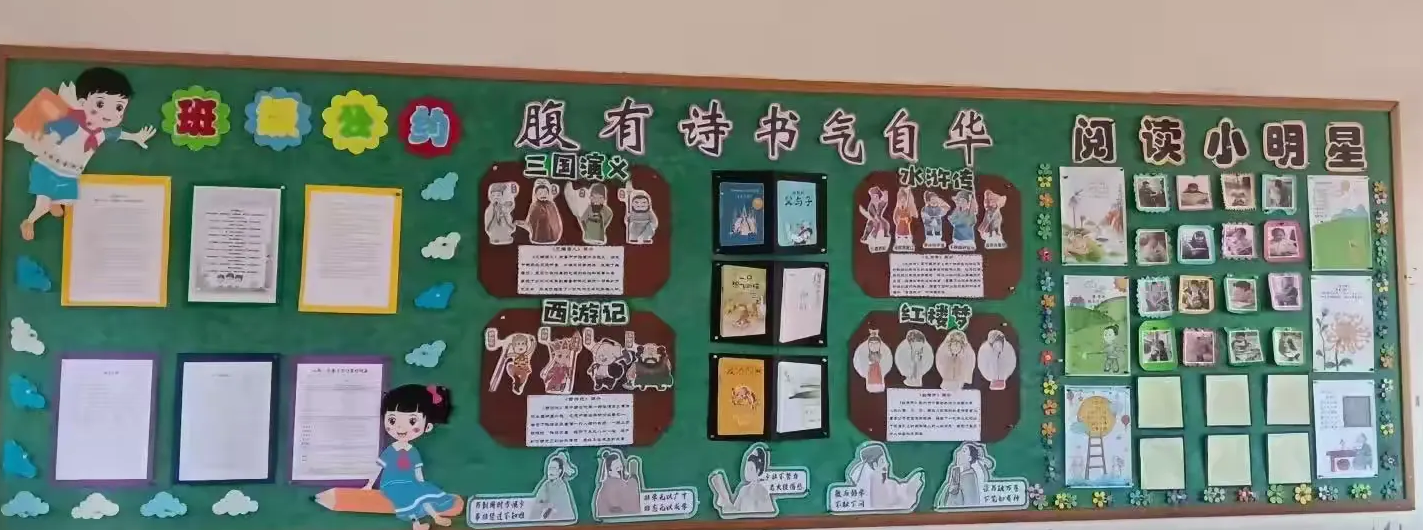 活動期間,各班主任充分發揮創意,利用教室的每一處空間打造閱讀角、文化墻。有的班級在教室一角精心設置了溫馨舒適的閱讀角,擺放著整齊有序的書架,各類書籍琳瑯滿目,涵蓋了文學、科普、歷史等多個領域,滿足了不同學生的閱讀需求。還有的班級將文化墻裝點得別具一格,張貼著學生們親手撰寫的讀書心得,以及筆鋒剛勁有力的書法作品,這些作品不僅展示了學生們的才藝,更彰顯出班級獨特的文化氣息。