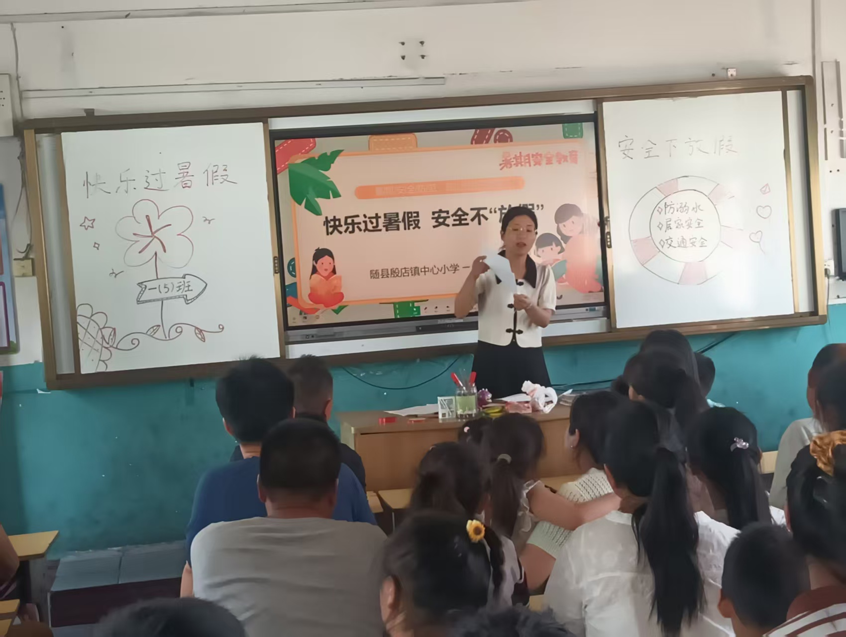 為了確保暑假期間學生在家的人身安全,6月24日下午最后一節課,隨縣殷店鎮中心小學以班級為單位召開暑假學生安全家長會,做到警鐘長鳴,防患未然,各班班主任主持召開此專題家長會。此次家長會的主題是《快樂過暑假?安全不“放假”》。各位家長和自己的孩子坐在一起,認真聆聽老師的安全知識講座,觀看電子白板上的有關安全的圖片和視頻。班主任老師結合全國近期發生的中小學生溺水事故,向家長和學生宣傳防溺水安全的重要性,動員家長攜手學校,共同教育孩子牢記防溺水“六不、兩會、四知”,同時強調防溺水安全是學校和家長的共同責任,家長在暑假期間一定要留心孩子的去向,監管好孩子的安全,尤其是防溺水安全,切實肩負起監護人的責任。