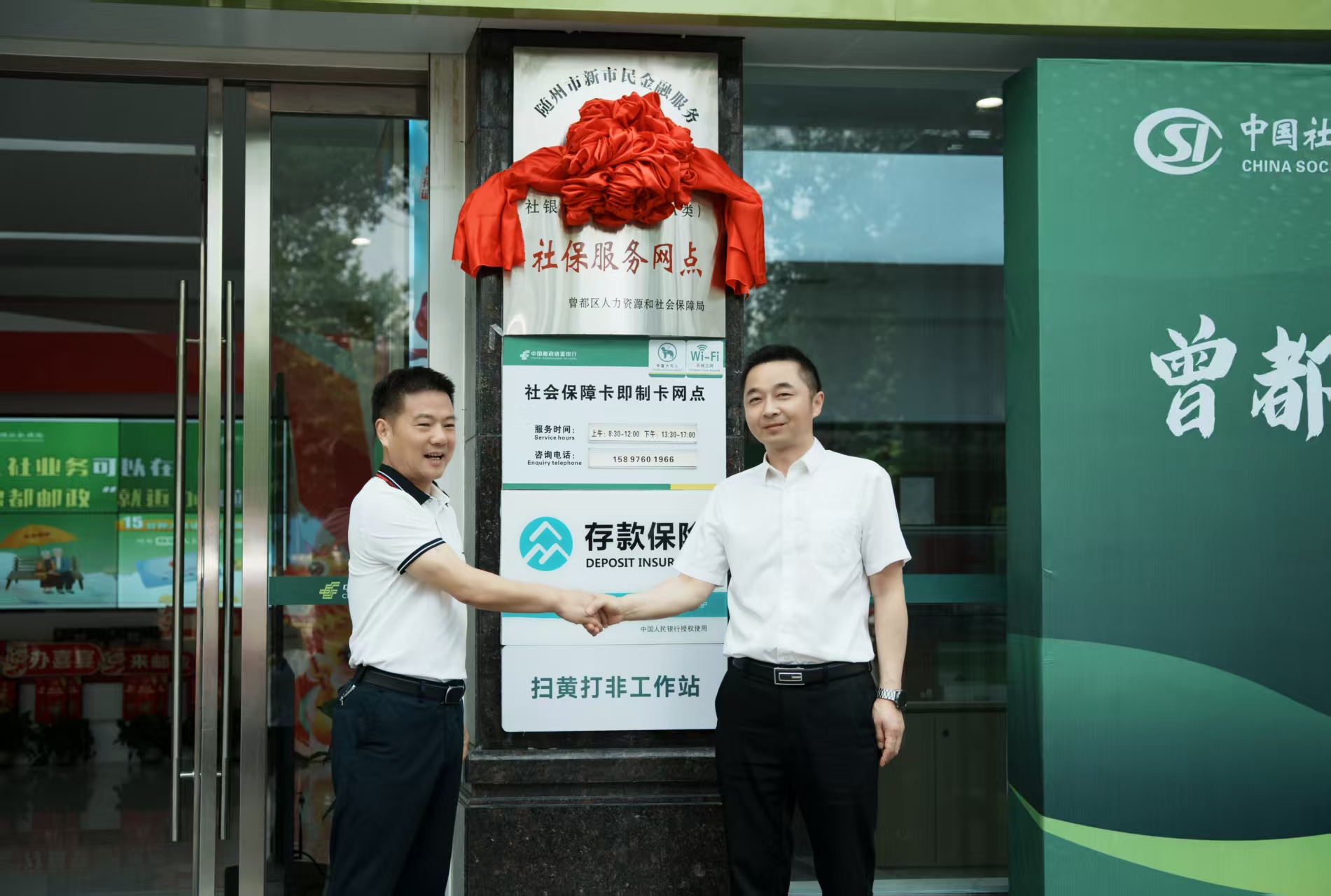 5月27日,中國郵政集團隨州市曾都分公司營業廳內,洋溢著便民服務的暖意。隨著紅色帷幕的揭開,曾都區人社局與曾都郵政共建的9個社銀合作網點正式啟用,標志著全區實現主要鄉鎮社銀服務網絡全覆蓋,群眾在家門口就可辦理19類48項高頻社保業務。