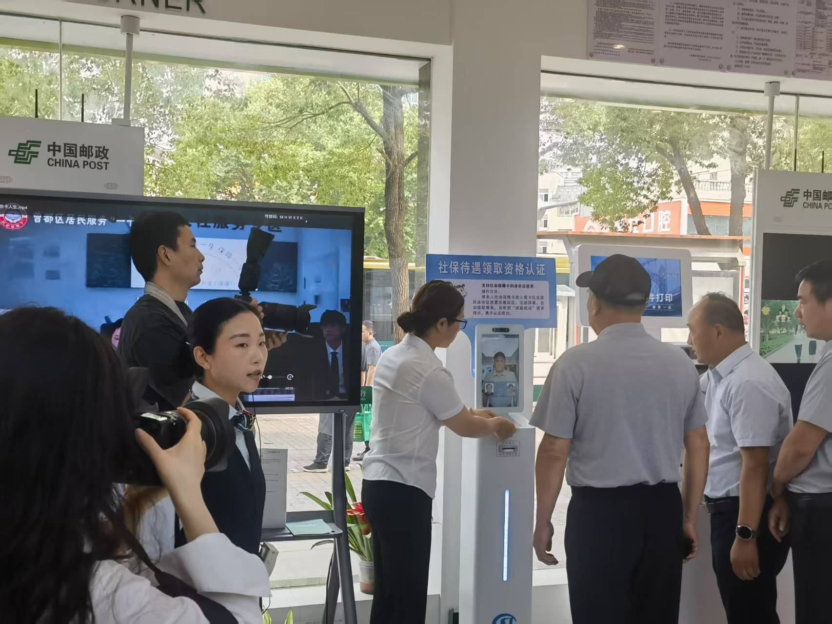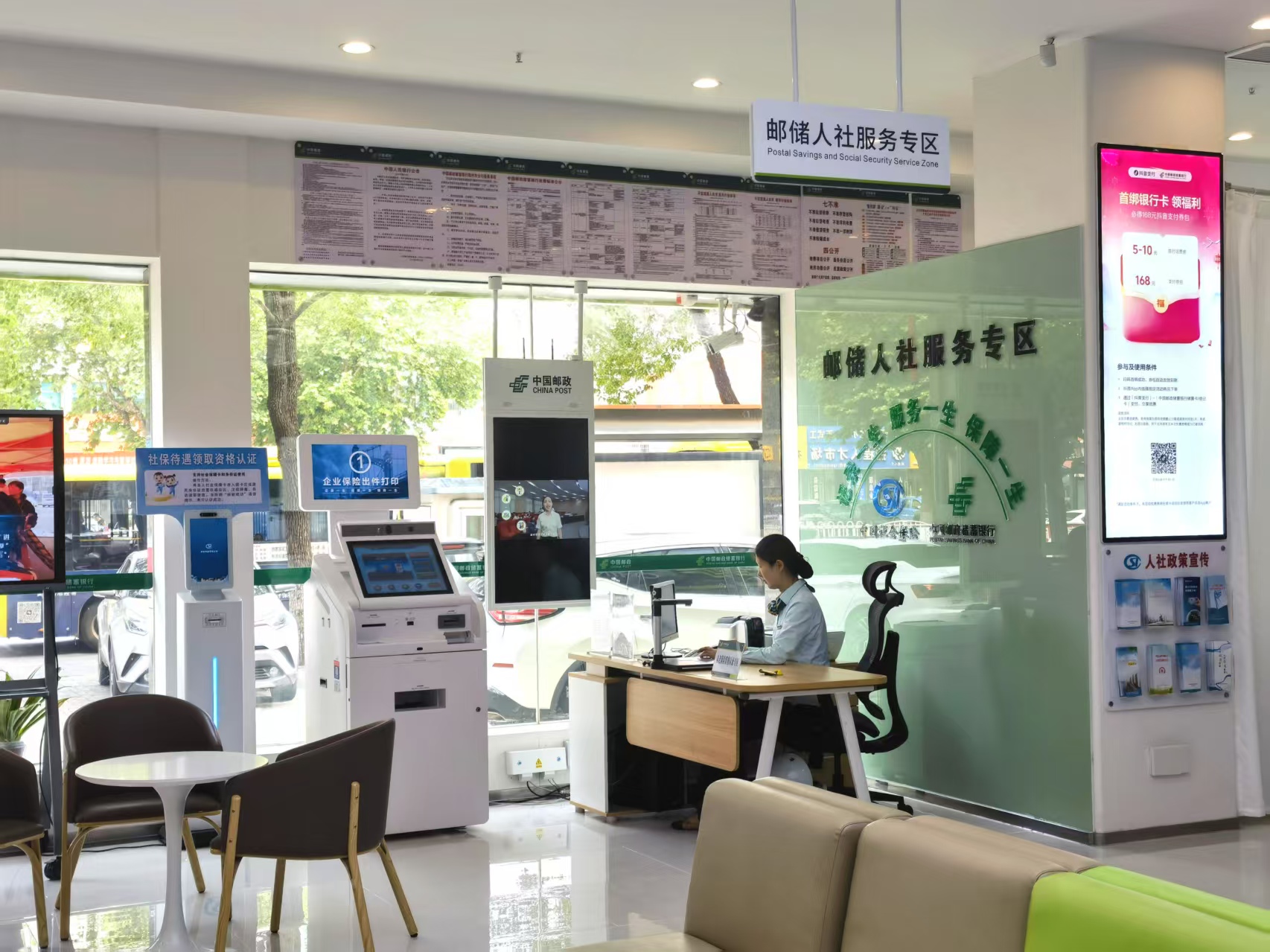 揭牌儀式現場,群眾體驗了社保業務辦理過程后,對社銀合作網點專業、高效、便捷的服務紛紛贊不絕口。“可以在郵政銀行辦理社保業務,對我們老百姓來說真的太方便了,中午他們不休息,我來辦事都不用等。”“剛來這里取退休工資,看到宣傳指示牌過來咨詢,沒想到不僅可以查詢打印,還能在設備上進行‘秒刷’待遇資格認證!”在明亮的大廳里,社保業務專柜、政策宣傳專區和自助服務終端,形成“三維”服務體系,為群眾提供養老保險參保登記、社保繳費查詢、待遇資格認證、社保卡辦理、個人權益查詢打印等人社高頻服務。最大程度地滿足群眾對人社業務“就近辦” “一次辦”的需求,提高群眾便利度,讓惠民舉措真正走進群眾生活。