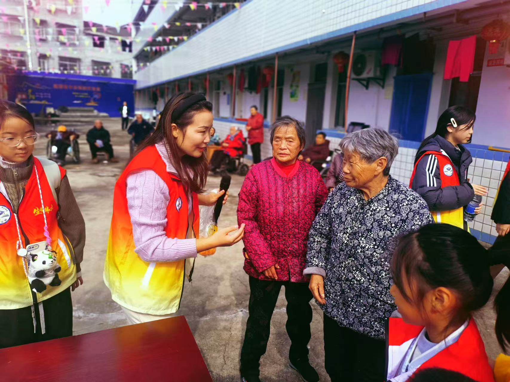上午9時,30余名孩子在愛心媽媽們的帶領下,和志愿者一起帶著精心準備的禮物抵達養老院。活動現場,志愿者們分工協作:醫療小隊為老人測量血壓、講解保健知識;文藝組獻上經典戲曲聯唱和手勢舞表演;學生團隊則圍坐在老人身邊,一邊修剪指甲一邊聆聽他們講述往事。86歲的李奶奶握著志愿者的手感慨:"這些孩子比親孫子還貼心!"