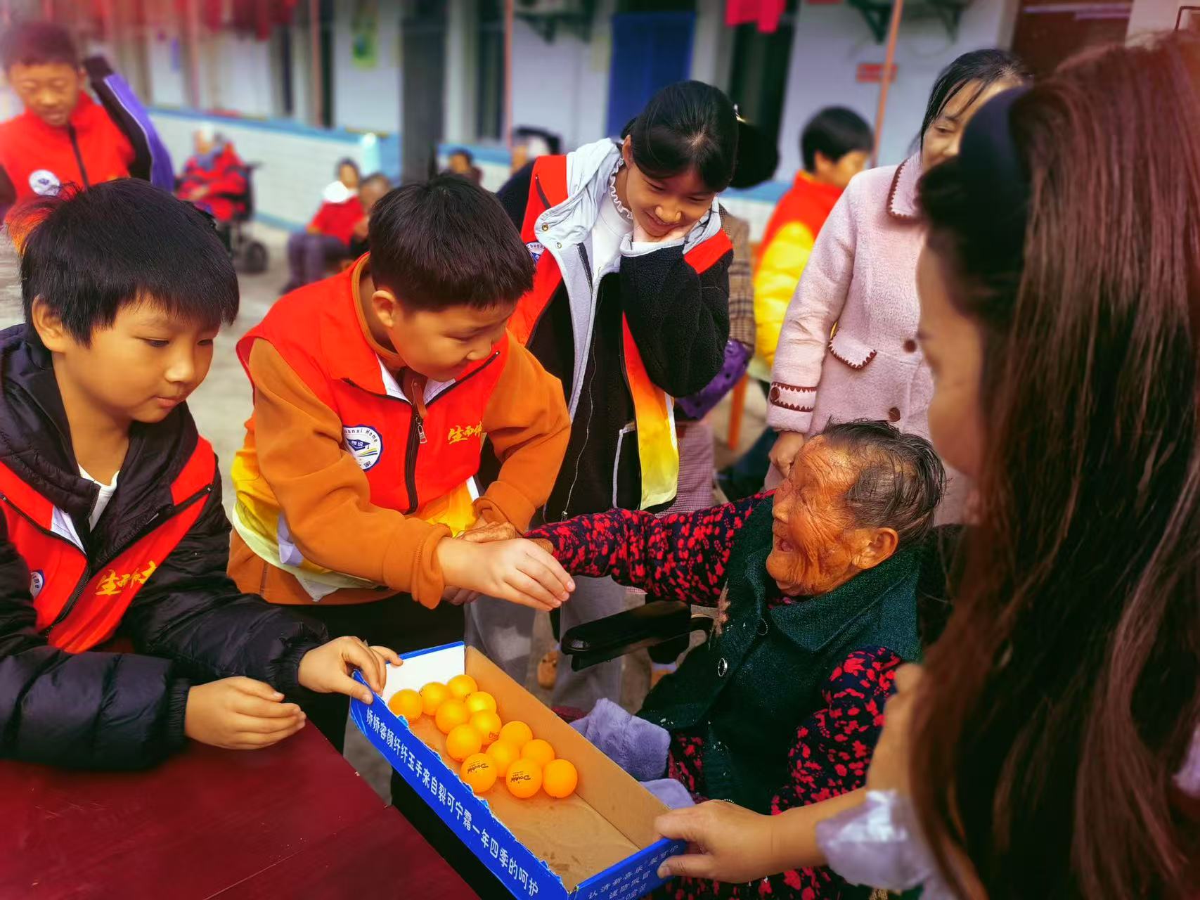 "我們特別設計了代際互動環節。"益路愛此次活動負責人徐敏介紹,本次活動不僅準備了米面糧油、老人圍脖等生活物資,還組織青少年與老人共同制作茱萸香囊、書寫"壽"字書法,玩抓球游戲,同唱紅歌等活動環節,讓傳統文化在老少攜手間傳承。隨園養老院院長表示:"志愿者們連續三年重陽節都來陪伴老人,這種堅持令人感動。"