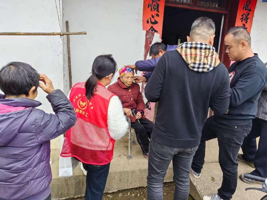 在栗樹(shù)嘴村,91歲的劉正芳老人家中成為此次改造行動(dòng)的受益者之一。面對(duì)腿腳不便及聽(tīng)力下降的問(wèn)題,社工和志愿者根據(jù)她的具體情況,不僅送去了所需的輔具,還現(xiàn)場(chǎng)幫助調(diào)試助聽(tīng)器,并與劉奶奶進(jìn)行了親切交流。坐在新安裝好的適老椅上,劉奶奶感受到了前所未有的舒適感,并表達(dá)了對(duì)政府關(guān)懷的感激之情:“真沒(méi)想到,在這個(gè)年紀(jì)還能享受到這么貼心的服務(wù),我一定要好好珍惜,爭(zhēng)取活到一百歲!”她的話(huà)語(yǔ)中充滿(mǎn)了對(duì)未來(lái)生活的樂(lè)觀(guān)態(tài)度和對(duì)國(guó)家為老政策的高度認(rèn)可。