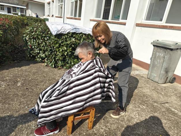 “大爺,我們來給您換個發型!”長崗鎮為老志愿服務隊的隊員帶著理發工具,笑容滿面地走到萬大爺身邊。理發的過程中志愿者們與他聊起家常,從年輕時的艱苦生活到如今的寧靜幸福,大爺的話匣子被緩緩打開。理發完畢,大爺對接鏡子,眼中閃爍著滿意。
