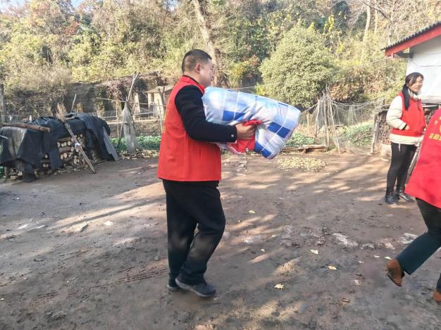 與此同時,長崗鎮退役軍人志愿服務隊的隊員們正忙著給村里的高齡獨居老人送被子。許奶奶,一位高齡老人,她的家簡陋確整潔,當志愿者們將嶄新的被子遞到她手中時,她緊緊的握住志愿者的手,笑容滿面的說:“感謝孩子們牽掛著我。”