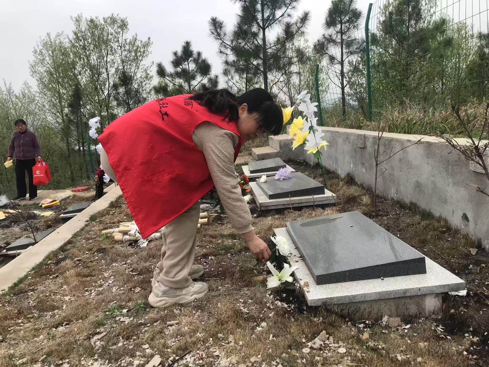 隨后,志愿者、參加清明祭祀家屬、村紅白理事會成員到沙門鋪公墓為17名逝者舉行集體祭祀。大家佩戴白花寄哀思、鞠躬行禮傳敬意、家庭追悼慰逝者,既保留傳統儀式感,又彰顯文明新風尚。