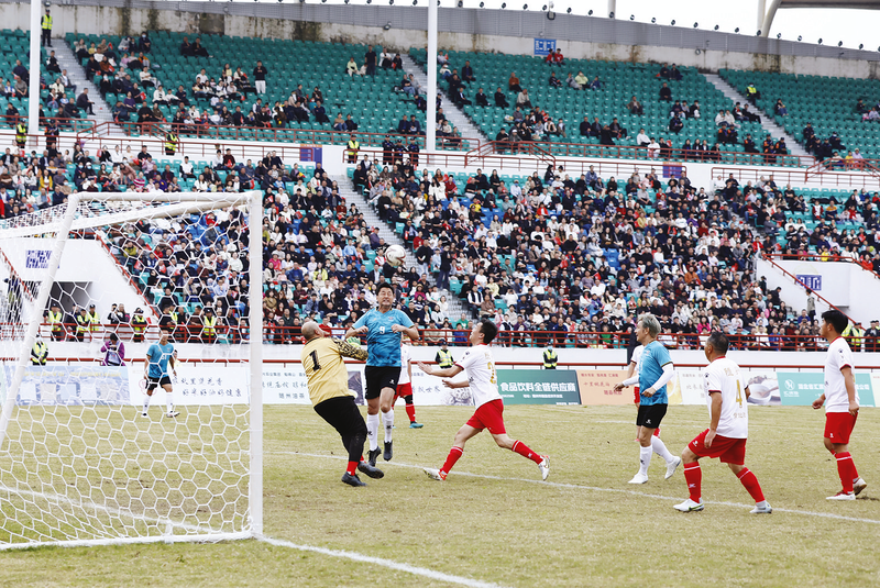 ??面對“星光熠熠”的對手,隨州本土球員毫不怯場,根據戰況靈活調整陣容和打法。隊員們憑借充沛的體能和團隊協作,與明星隊展開激烈對抗,并在對方球門前制造險情。“隨州隊,加油!”“隨州隊,進一個!”比賽尾聲階段,在全場觀眾的助威吶喊聲中,隨州隊抓住機會打入一粒漂亮進球。最終,香港精裝明星足球隊以3:1戰勝隨州市精英足球隊。