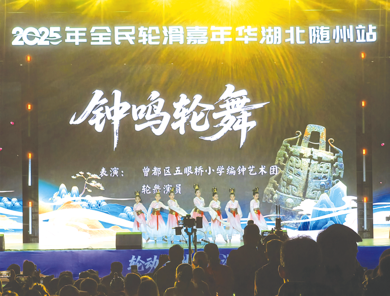 活力綻放,輪滑盛會為隨州城市宣傳“加速度” 現場敲響編鐘,穿著輪滑鞋的古裝舞者水袖翻飛。輪滑之夜,曾侯乙編鐘樂團與輪舞演員共同帶來創(chuàng)新表演《鐘鳴輪舞》,將古老的金石之音與青春活力的輪滑融合,令來自全國各地的參賽選手們印象深刻。