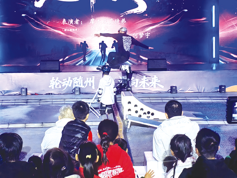 高難度輪滑技藝展示 (隨州日報全媒記者鐘金輝攝)