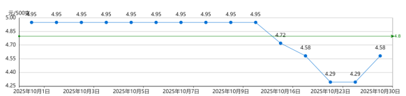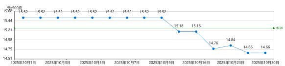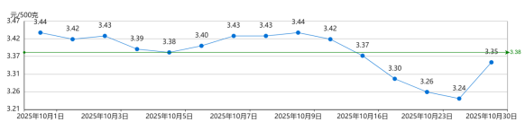 2025年10月1日—2025年10月31日隨州市雞蛋價格走勢圖