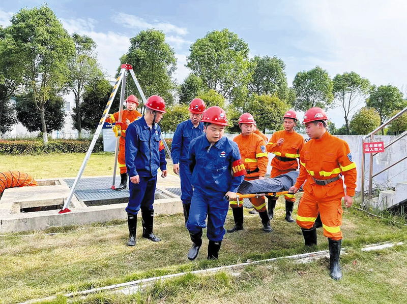 夏日來臨,有限空間內(nèi)作業(yè)環(huán)境溫度高、濕度大,加劇了有毒有害氣體生成積聚,發(fā)生安全事故可能性較大。城南污水處理廠圍繞有限空間作業(yè)安全管理工作實際,結(jié)合自身行業(yè)特點和業(yè)務內(nèi)容,制定培訓內(nèi)容和演練腳本,明確現(xiàn)場負責人、作業(yè)人、監(jiān)護人及應急救援人員職責,按規(guī)范要求開展交底培訓、作業(yè)票簽發(fā)、現(xiàn)場通風與檢測、穿戴安全防護用品、下井作業(yè)。培訓內(nèi)容詳實貼切、演練隊伍緊密配合,活動取得了圓滿成功。