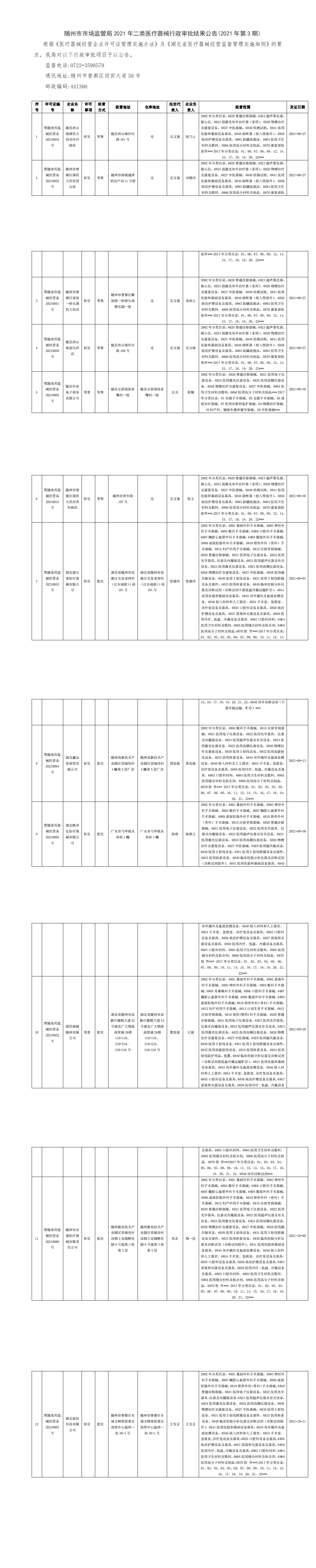 隨州市市場監(jiān)督管理局2021年二類醫(yī)療器械行政審批結(jié)果公告(2021年第3期)
